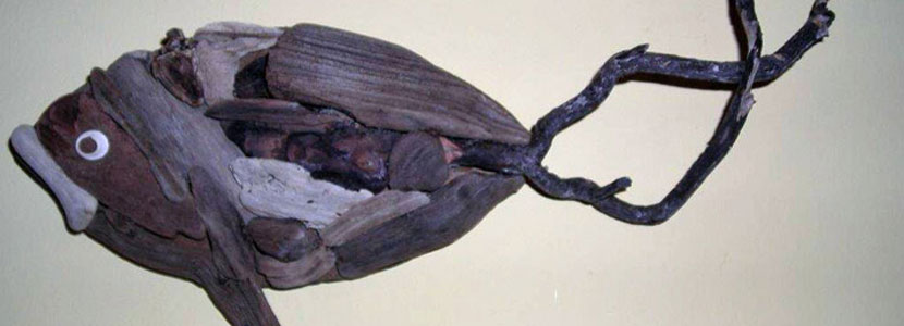 Lucy beachcombs extensively in winter, collecting driftwood, shells, rope, china fragments and other items from which she makes mirrors,